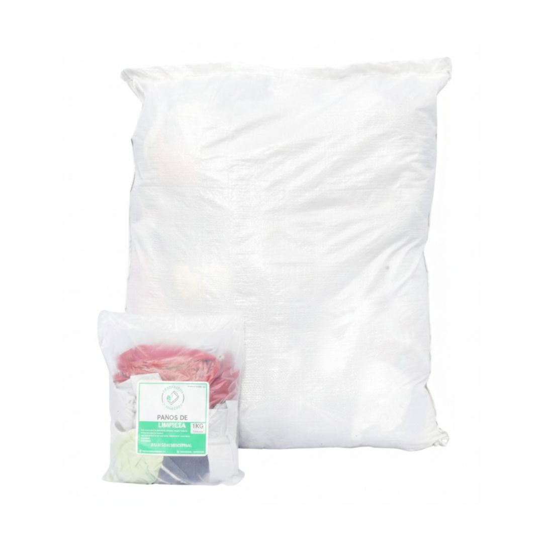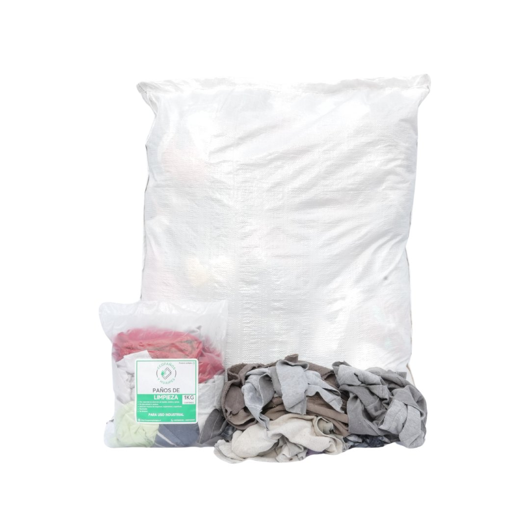 Paños de limpieza confeccionados con prendas de franela recicladas. Poseen buena capacidad de absorción de líquidos y aceites. Producto lavable y no abrasivo.